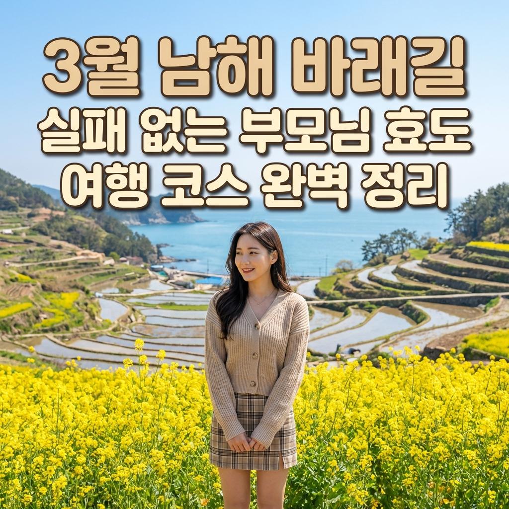 3월 남해 가볼만한곳 1순위인 남해 바래길 다랭이마을 유채꽃 풍경과 5060 부모님 동반 여행을 위한 걷기 편한 코스, 주차 정보, 현지인 맛집 비용까지 핵심만 담았습니다.