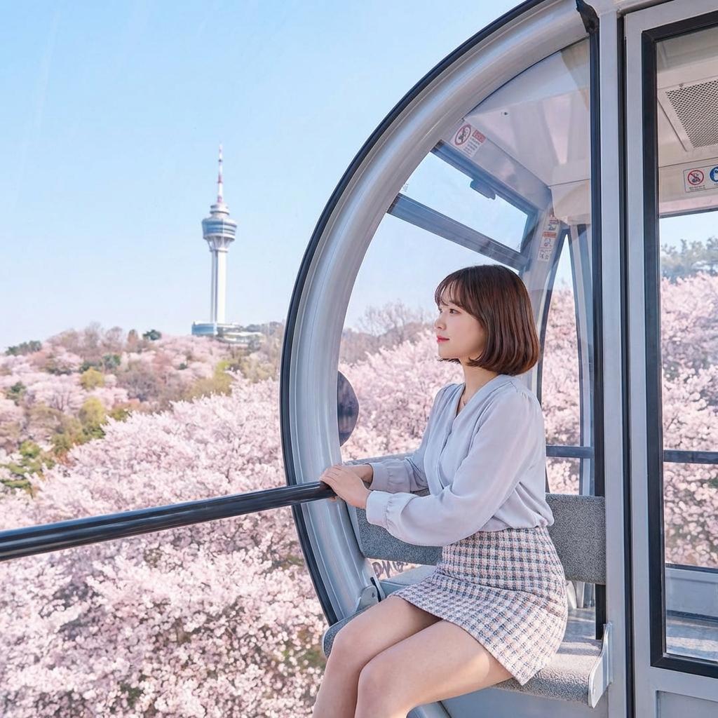 정문에서 83타워까지 운행하는 무료 셔틀버스를 적극 활용하세요. 휠체어나 유모차가 있다면 케이블카인 스카이웨이를 이용하는 것이 더 편리합니다. 공중에서 내려다보는 벚꽃 대궐의 풍경은 그 자체로 감동입니다.