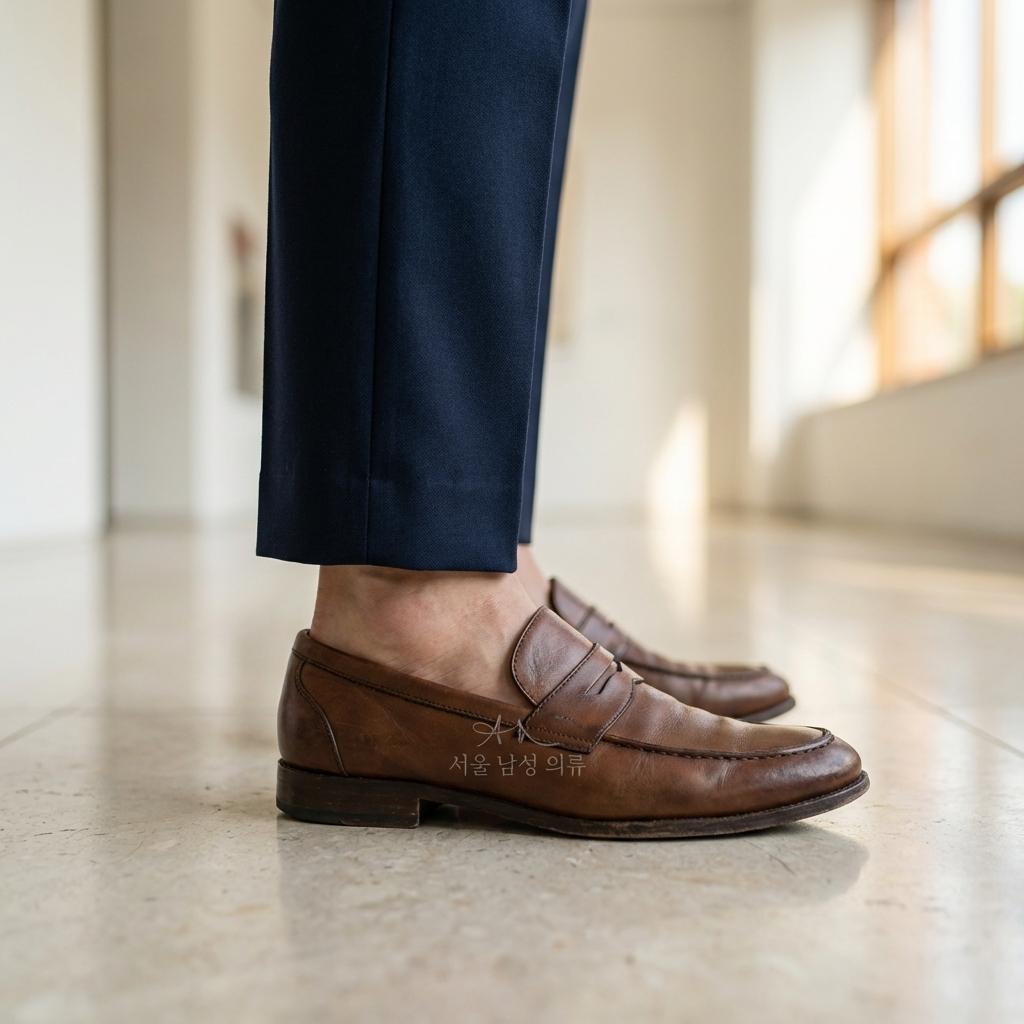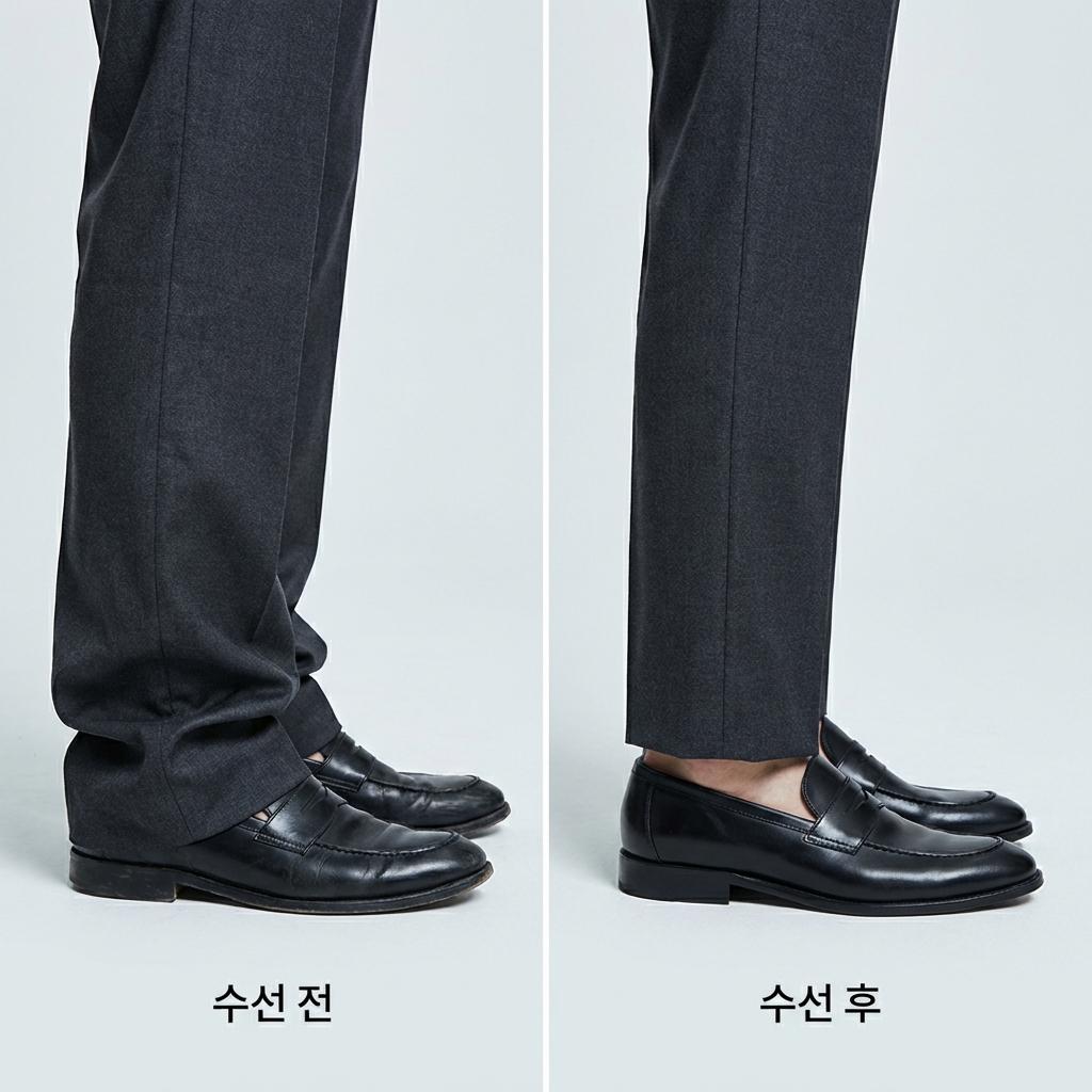 신발의 굽 높이와 설포(혀) 높이도 기장에 영향을 줍니다. 굽이 있는 로퍼나 단화를 신을 때는 기장을 약간 더 짧게 잡는 것이 주름을 방지하는 비결입니다. 전체적인 균형을 생각하는 것이 수선의 핵심입니다.