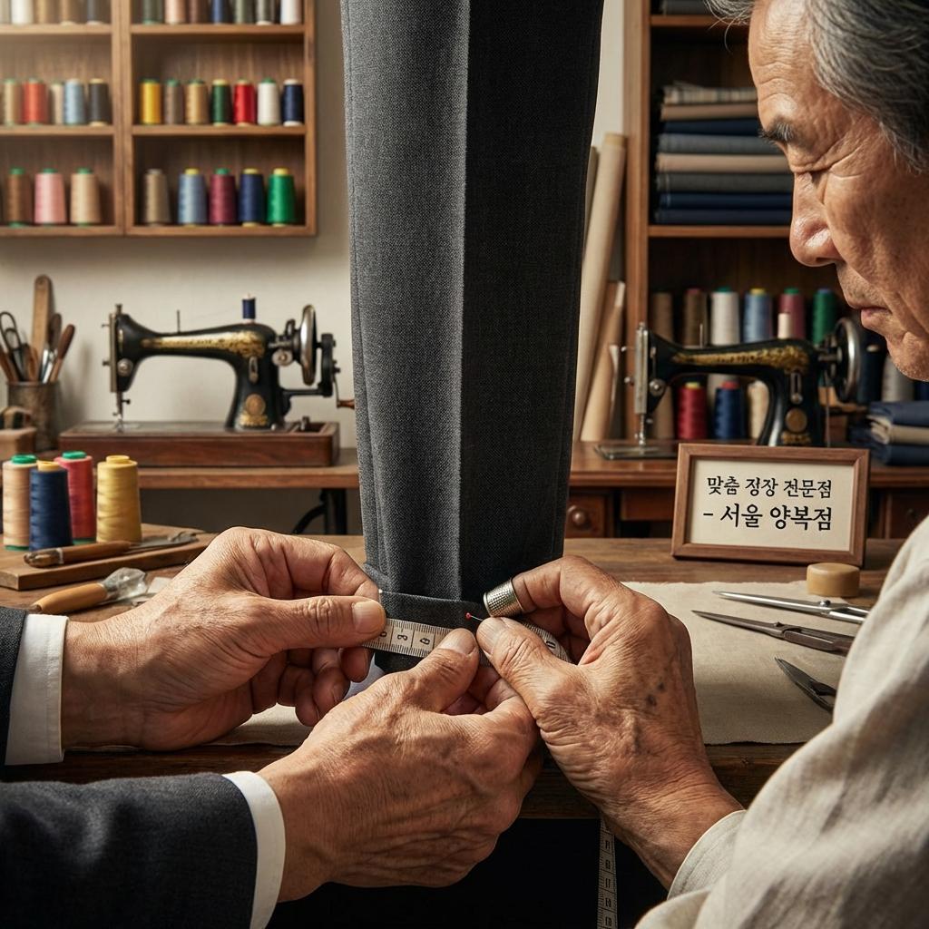 수선집에 가서 단순히 "조금만 줄여주세요"라고 하면 실패하기 십상입니다. "밑단이 신발에 닿지 않게, 복숭아뼈 중간 정도로 해주세요"라고 명확히 말씀하세요. 특히 중 하나인 '모닝컷(뒤쪽을 앞쪽보다 약간 길게)'을 요청하면 더욱 깔끔합니다.